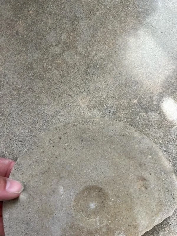pictured above, a concrete repair sample is being held over the project slab, notice how well the color and texture blends into the existing slab.